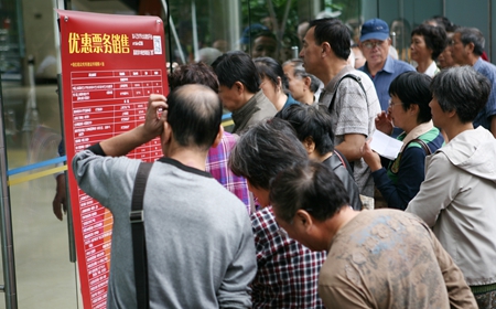 本届艺术节优惠票的票源9月初开始启动,优惠票总数近一万八千张,比去年增加三千张。优惠票平均票价在50元左右。图为上海市民踊跃购票。中国文艺网张悦摄