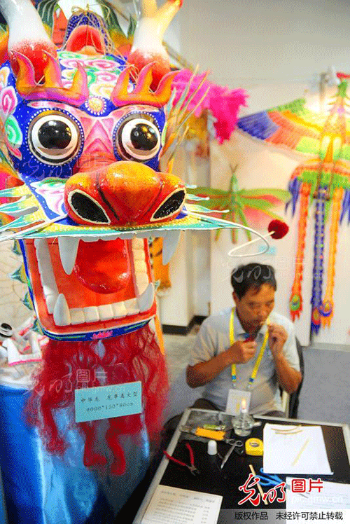 10月24日,风筝制作师程先生正在制作风筝。当日,2013中国(杭州)工艺美术精品博览会在杭州和平国际会展中心开幕,博览会将一直持续到10月28日。连国庆摄/光明图片