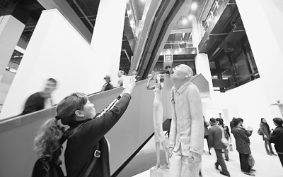 10月29日,观众在重庆美术馆参观。当日,位于重庆解放碑国泰艺术中心的重庆美术馆正式开馆,并迎来2013重庆青年美术双年展。作为该馆的首秀,来自重庆、北京、广州、成都、伦敦、巴黎、柏林等城市的47位艺术家共同推出“城市幻象”主题艺术展。