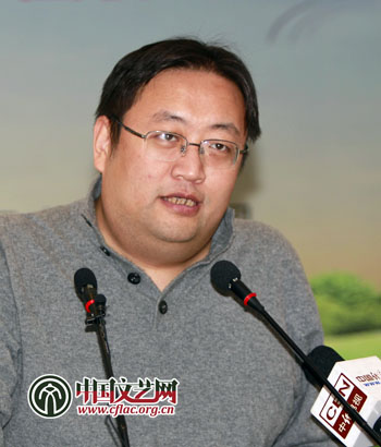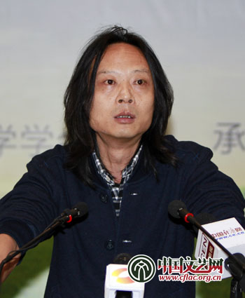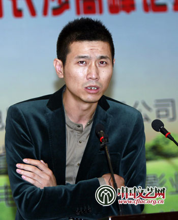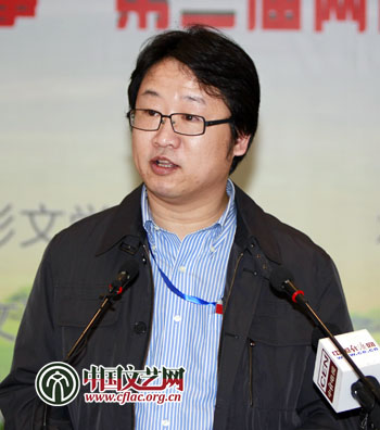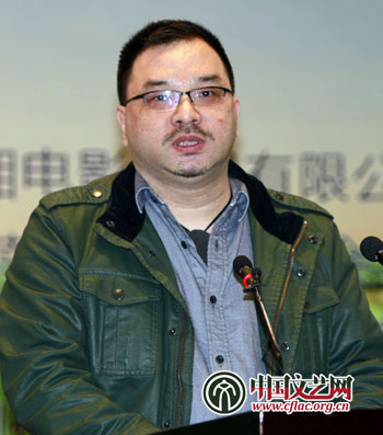 图为潇湘动漫文化有限公司编剧李涛发言,“中国的功夫、熊猫,产生了美国的《功夫熊猫》,这不是中国故事,是‘香蕉’故事。”中国文艺网 张志勇 摄