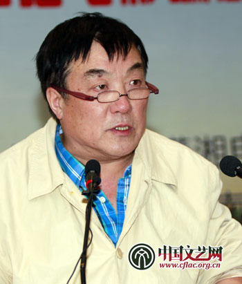 图为《惊天动地》《突出重围》编剧柳建伟发言,“讲好中国故事,首先要讲好中国故事的历史、现实和文化的背景。”中国文艺网 张志勇 摄