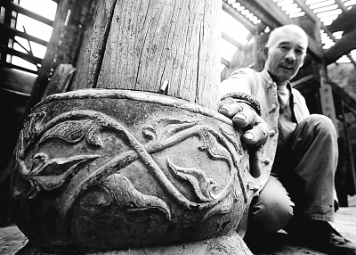 广西全州,复建的古民居梁柱底座雕刻着精美的花卉。CFP