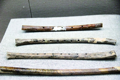 骨器,是贾湖遗址所挖掘出来最多见的器具。中国科技大学教授张居中在他的《贾湖遗址的发掘与研究报告》中指出,贾湖骨器特别发达,种类繁多,箭头、骨镖制作精细,骨笛的制作更反映出贾湖人高超的计算水平。中国艺术研究院音乐研究所原所长王子初更是肯定道:“8300年前生活在淮河流域的贾湖人,制作的成批的七音孔骨笛,为人类在新石器时代初期最进步的乐器。贾湖骨笛的发现,为世界音乐考古的重大事件,它改写了音乐史。”