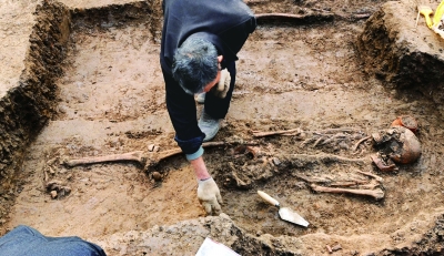 2013年10月26日,考古人员在贾湖遗址发掘现场工作。新华社记者 朱祥摄