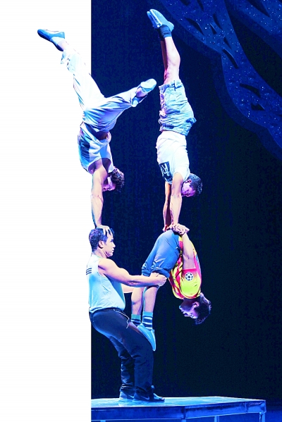 英国演员在表演四人力量顶 光明日报记者 杨连成摄