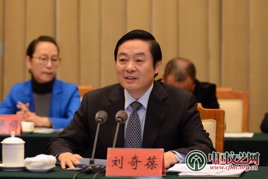 11月29日,中国电影家协会第九次全国代表大会在京召开。图为中共中央政治局委员、中央书记处书记、中宣部部长刘奇葆在大会上讲话。 中国文艺网 单鸣 摄