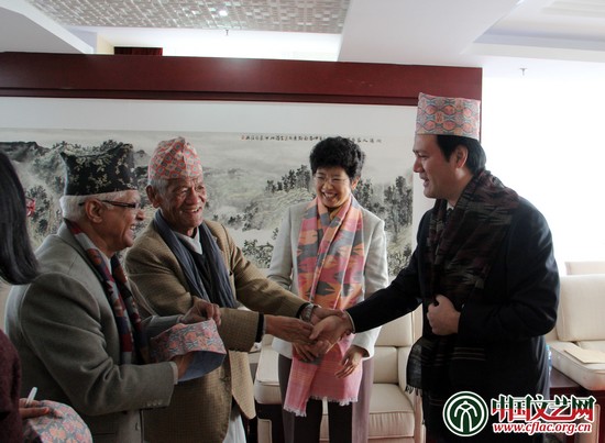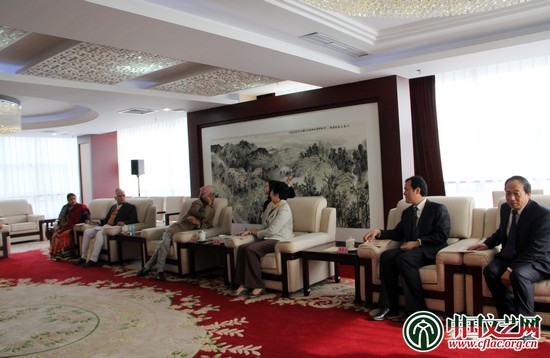 中国文联党组书记、副主席赵实与尼泊尔文学院院长亲切交谈 中国文艺网 郑荣建 摄