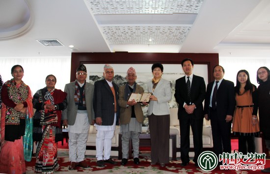12月4日,中国文联副主席赵实,书记处书记李前光在中国文艺家之家会见应邀来访的尼泊尔学院代表团一行。