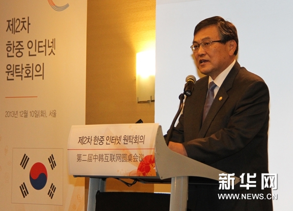 第二届中韩互联网圆桌会议10日在韩国首尔举行,会议以“互联网的发展与安全”为主题,汇集了中韩两国政府部门、行业组织、知名互联网企业和学术机构等近百位代表参与讨论。中国国家互联网信息办公室主任鲁炜、韩国未来创造科学部部长崔文基出席会议并作主旨演讲。 图为12月10日,韩国未来创造科学部部长崔文基在第二届中韩互联网圆桌会议上作主旨演讲。记者姚琪琳摄