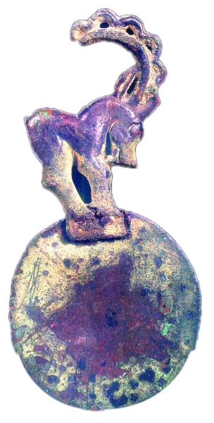 图为新疆伊吾县苇子峡墓地出土的立鹿式铜镜资料图片