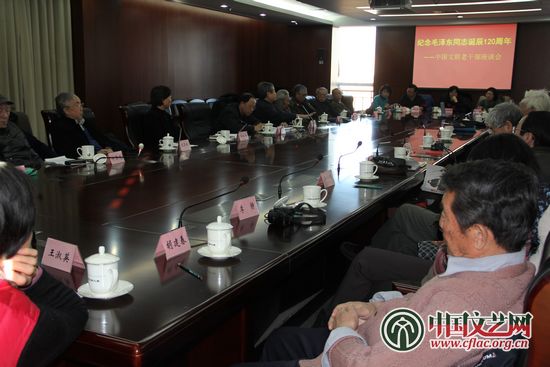12月19日,纪念毛泽东同志诞辰120周年——中国文联老干部座谈会在中国文艺家之家召开。来自各文艺家协会、中国文联机关各部室、各直属单位的近30位离退休老干部代表与会,从不同角度缅怀了毛泽东同志的精神,以及毛泽东对中国文联及各门类艺术和艺术家的关怀,一致表示要更加深入学习、坚持和发展毛泽东思想。会上,李准、吕厚民、常祥霖、何孝充、刘钦明、张飙、佟树珩、张圣节8位老干部、老艺术家做了重点发言。