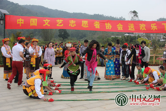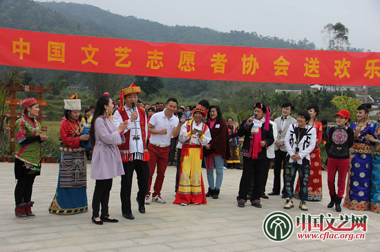 中国文艺志愿者协会带领艺术家前往什寒村分会场与当地黎族苗族群众进行互动演出 中国文艺网 孙菁 摄