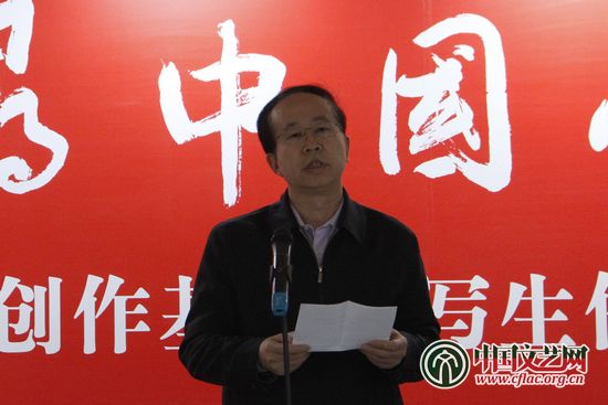中国文联党组成员、副主席左中一在开幕式讲话中高度肯定了美术家赴基层采风创作的奉献精神。中国文艺网 马李文博 摄