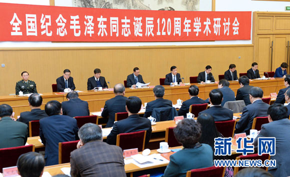12月27日,中共中央政治局常委、中央书记处书记刘云山在北京出席全国纪念毛泽东同志诞辰120周年学术研讨会并讲话。 新华社记者 刘建生 摄