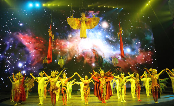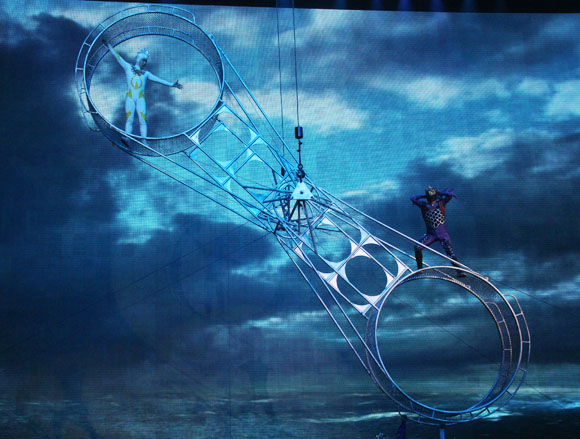 图为颁奖仪式后,河南省杂技集团的大型杂技剧《水秀》上演,为观众呈上一场视觉盛宴。中国文艺网 何瑞涓 摄