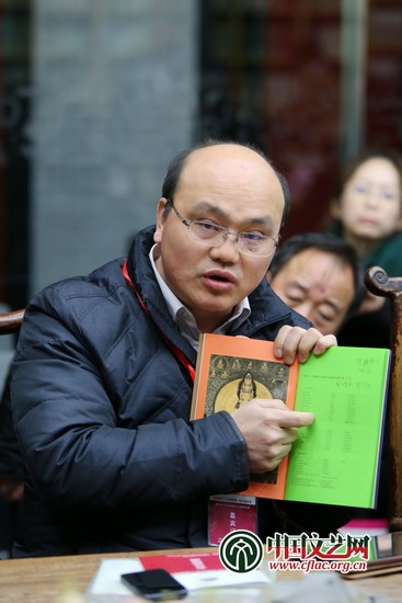 《中国唐卡文化档案田野普查工作手册》出版发布。图为故宫博物院研究员罗文华对普查手册的进一步完善和执行建言献策。中国文艺网 张志勇 摄