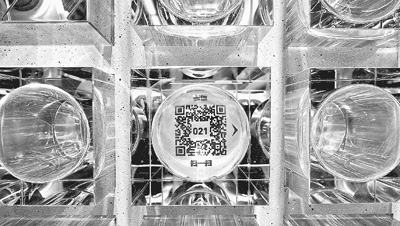 南锣鼓巷地铁站内,包裹着二维码的琉璃单元体。人民日报记者 赵婀娜摄