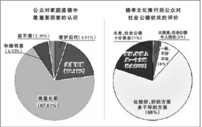在德孝文化建设过程中,盐湖区党员干部“以德施政”的意识普遍得到增强,工作作风明显得到转变。几年来,全区各级领导干部,下乡包村进企业,带头争当道德楷模,为人民群众树立起了德孝实践的典范。“在盐湖区行政部门办事有一种到家的感觉,服务主动热情,处处为咱着想”,天龙建材厂董事长屈广吉感慨,现在去区环保、规划、国土等部门办手续,一进门工作人员总是热情接待,并仔细告知办手续的程序和需要准备的资料,局里同志还主动上门,帮企业解决难题。广大农村基层党员干部,把以德施政化作带领群众致富的智慧和本领,发展了一个又一个特色产业。解州镇西元村的村党支部书记张四有,从上世纪90年代初开始搞鱼塘养殖,年收入上千万,解决了一二百位村民的就业。他捐资100万元为村里修路,捐资建立村老年人日间照料中心,并承担了中心所需的运营费用。槐米是珍贵的中药材,但产量很低。三路里镇沟东村村主任雷茂端把自己多年培育出的8个优良品种奉献给当地农民,实现了槐树当年栽植、当年两季结米,目前沟东村已有1000多亩开始结米,单项人均年增收2000多元,村民人均年收入达到8000多元,成为旱垣地区农民增收的一项主导产业。我们在陶村镇五曹村调研时,碰到老“上访户”焦雨高,正在参与布置村里的德孝文化展览。他去年从市区搬到村里住,主动要求为村里出板报、编德孝节目,为老年人服务。说起前些年上访的事,他说,我也知道反映的问题没法解决,但以前有些干部不务正业,看着都来气,想给他们添点堵,现在风气正了,干部们都扑下身子为大伙办事,那些陈芝麻烂谷子的事就不提了。类似的故事在盐湖区举不胜举。“以德施政”开拓了党员干部的工作视野、促进了党员干部的工作创新、提高了党员干部的工作水平,也改善了党群、干群关系。在2012年运城市开展的政务服务满意度测评中,盐湖区排名第一。课题组此次调查的结果亦显示,人们对于公共服务部门的工作态度、专业程度总体上是满意的,超过半数的人认为公共服务部门工作人员的态度很好,近70%的人认为公共服务部门工作人员的专业水平能够接受,远高于全国的平均水平。