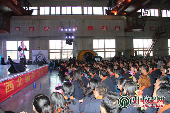1月5日,宁夏西北轴承股份有限公司的生产车间没有了平日里轰鸣的机器声,取而代之的则是职工们一浪高过一浪的掌声与喝彩声。当天,由中国文联、宁夏回族自治区人民政府、自治区党委宣传部、中国曲协、宁夏文联主办的“我们的中国梦——送欢乐下基层”文艺志愿服务团走进宁夏慰问演出在此举行。此次演出也是中国文联曲艺艺术中心承办的首场文艺志愿服务活动。