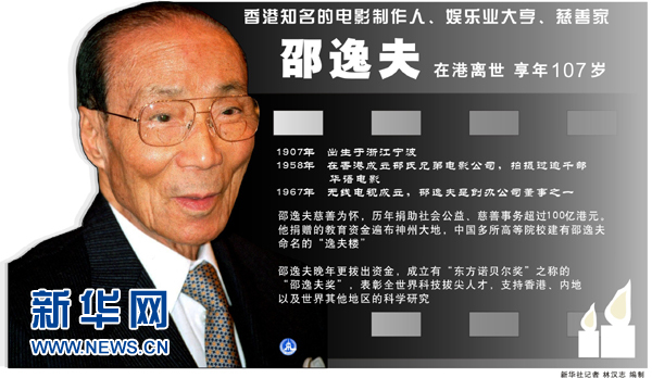图表:邵逸夫在港离世 新华社记者 林汉志 编制