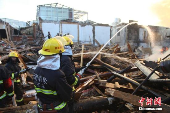 1月11日凌晨1点30分左右,云南香格里拉独克宗古城四方街发生火灾,起火原因不明。火灾发生后,当地武警、消防人员立即赶赴现场实施扑救。截至目前,古城火灾明火已经扑灭。据当地政府新闻办通报,初步统计火灾烧毁房屋100多栋,初步测算造成经济损失达1亿多元。中新社发 王星皓 摄