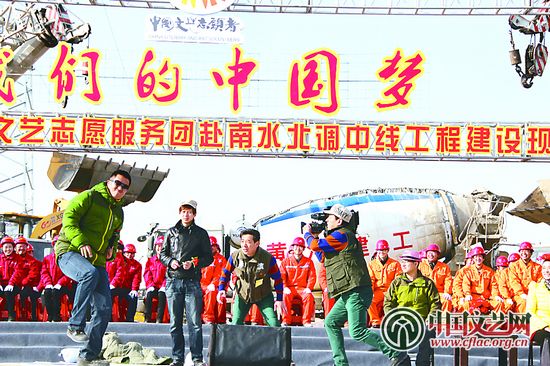会同各全国文艺家协会组织文艺志愿服务团赴辽宁舰、海南省三沙、文昌和琼中市、西昌卫星发射基地、甘肃陇南、青海玉树、广西防城港、湖北红安和罗田、福建上杭才溪中央苏区、龙岩古田和莆田、浙江舟山、宁夏银川、江西抚州、四川雅安和攀枝花、贵州安顺、西藏山南、吉林白城、黑龙江北大荒、中航工业沈飞民机、安徽高铁建设工地、河南南阳南水北调工地和湖北丹江口库区移民新村、北京大兴养老院、河南濮阳革命老区、云南威信、吉林松原等地,开展慰问演出、展览展示、专家辅导等内容丰富、形式多样的惠民文艺活动,为广大人民群众送去欢乐、带去精神食粮。据统计,仅2014年元旦春节期间,中国文联及各全国文艺家协会以“我们的中国梦”为主题,组织26支文艺队伍、700多位知名艺术家和文艺工作者,深入江西等9省区市的最基层进行慰问演出共35场。