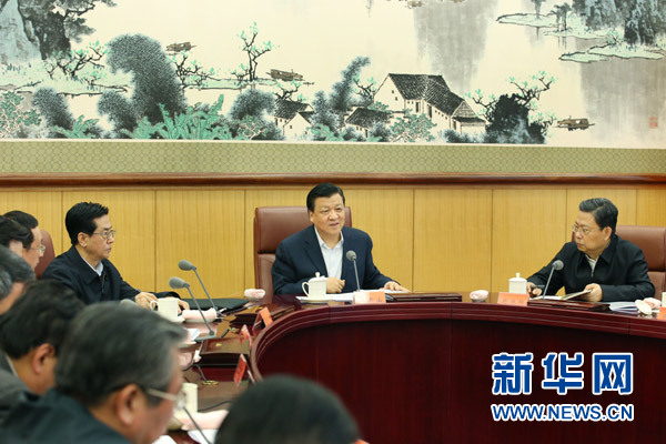 2月9日,中共中央政治局常委、中央党的群众路线教育实践活动领导小组组长刘云山在北京主持召开中央党的群众路线教育实践活动领导小组第九次会议。新华社记者 姚大伟 摄