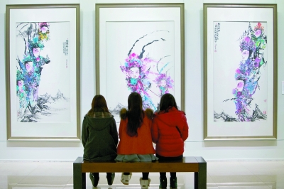 观众在中国美术馆欣赏中国画。新华社发(赵冰摄)