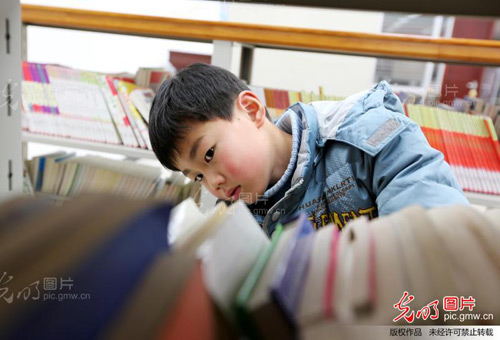 上、下图为小朋友在安徽省淮北市图书馆内阅读图书。李鑫摄/光明图片