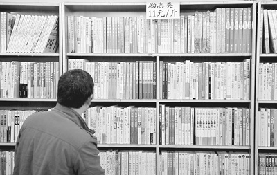 一家书店打出了励志类图书论斤出售的广告。王启明摄