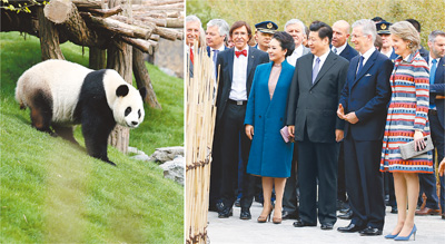 习近平和比利时国王菲利普共同出席大熊猫园开园仪式