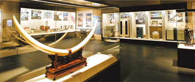 图为中国海关博物馆展示的海关查获的走私象牙。