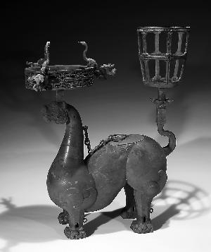 ▲湖北随州文峰塔东周墓地出土的铜灯。