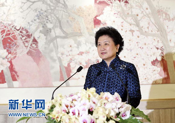 4月28日,中国国务院副总理刘延东在北京代表中国政府向获得“文化交流贡献奖”的外国机构和友好人士颁奖并表示祝贺。这是刘延东在颁奖典礼上致辞。新华社记者丁林摄