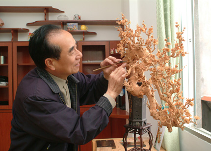 制作软木画,要经过选材、雕刻、拼接、装框等工序。软木画妙在运用“以小观大”的艺术手法,“丛山数百里,尽在一框中”。产品有平面浮雕多层次的壁挂、双面座立透屏等。最近在欣赏软木画和漆粉绘结合上创制出情趣横溢的花瓶木画、烟具木画、大屏风、围屏、挂联等品种。