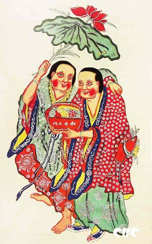 早在汉代,中国就有贴门画的习俗,人们把传说中的门神贴在门上,以示驱邪避灾,这是年画的前身。两宋时称作"纸画",其题材也扩大到表现美好生活、吉祥欢乐及历史人物题材。明代叫"画贴",清代道光年间始称为"年画"。民间年画随着历史的发展几经演变,各地年画形成了自己的独特风格。