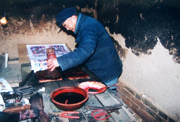 “同顺和”版画作坊,它的五代传人是:相开宗—相玉和—相贵芬—相月德—相连街。相连街今年69岁,他讲述了五代人的版画作坊史:“老老爷爷相开宗是清代的秀才,他经营作坊有方;老爷爷相玉和继承下来,大约1870年,他租用铁塔寺的后大厅,带领四十多人在那里赶印神码门神,整个大厅内纸画挂得满满的,可以看出当时民间版画作坊相当繁荣。”