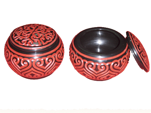 云雕,也称剔犀,是雕漆工艺的一种,因其图案多以回旋生动、流转自如的云纹回钩组成,故称“云雕”,日本称为“屈轮”。此种工艺是用两种(一般为朱、黑二色)以上的天然大漆在胎体上有规律地交替髹涂,漆层厚度累计达5毫米,再用刀加以剔刻,刀口上宽下狭,进刀深峻,棱面分明,刀口断面可见交替往复的色漆层。