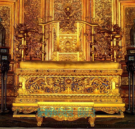 早期皇帝的宝座大量沿用金漆镶嵌的工艺