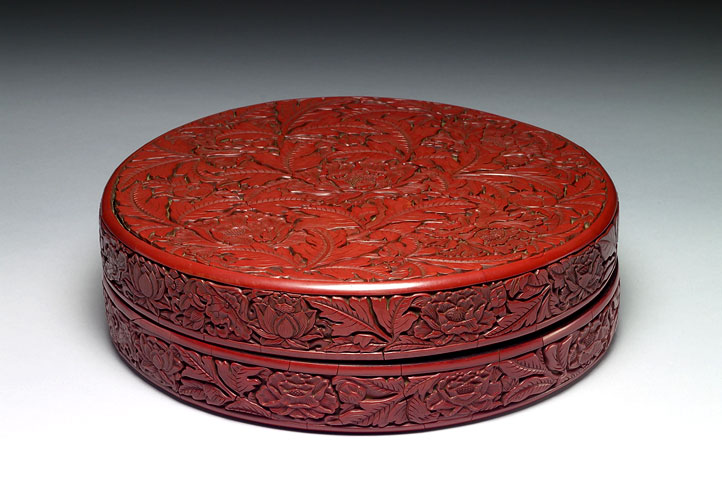 据明代黄成的《髹饰录》记载,这种古老的工艺发源于唐代的四川、云南一带,但是我们今天还没有见到过唐代的雕漆作品。宋代是雕漆工艺的发展时期。"剔红"和"剔犀"都已经出现。北京故宫博物院藏有一件精致的剔红传世品《桂花纹剔红盒》,日本圆觉寺也藏有东渡日本的宋代遗民许子元携去的《醉翁亭图朱锦地剔黑盘》。剔犀工艺在宋代已经十分成熟,在江苏武进和山西大同等地的南宋、金代墓葬中都出土了为数不少的剔犀器具。比如,出土于江苏金坛南宋周墓的《剔犀执镜盒》便是一件技艺纯熟的作品,镜盒直径15.4厘米,长27厘米,木胎,漆层肥厚,刀口圆熟,现藏于常州市博物馆。出土时,盒子内部还有一把执镜,可见当时,富有的人家在日常生活中已经十分钟情于雕漆制品了。