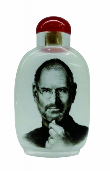 王志江的父亲也是一名内画鼻烟壶手艺人,在家人的耳濡目染中,他从小便对这门艺术产生了浓厚兴趣。从初学至今,他已经从事内画艺术16年之久。回忆自己的学艺经历,他用“痛并快乐着”来形容。“由于内画艺术都是反向作画,所以在这个行业,写字是第一难的,我说的这个‘写字’,是指写什么字体就要像什么字体,而不是自己随便瞎写的。第二就是要求有造型基础。传统的肖像画是勾线的,但是‘马家’的要求是有一定的立体感。我以前学过西画,所以学起来感觉还不那么吃力。”王志江说。