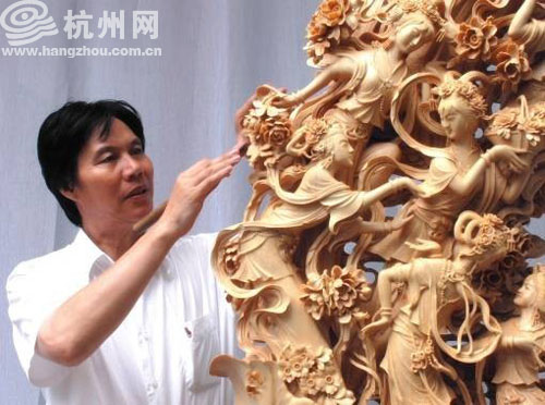 东阳木雕大师吴初伟雕刻作品中