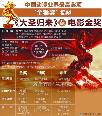 《大圣归来》曾获中国动漫业界最高奖项“金猴奖”电影金奖。新华社发