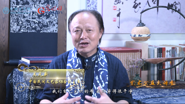 吴元新,中国民间文艺家协会副主席,首批国家级非物质文化遗产代表性传承人。四十多年来,他致力于保护和传承蓝印花布技艺,创建了全国首个蓝印花布博物馆,抢救保护了数以万计的古旧蓝印花布实物遗存,创新设计的蓝印花布作品三度荣获“山花奖”,被中宣部、中国文联授予“第三届全国中青年德艺双馨文艺工作者”荣誉称号……回顾自己的非遗传承之路,吴元新深感不易: