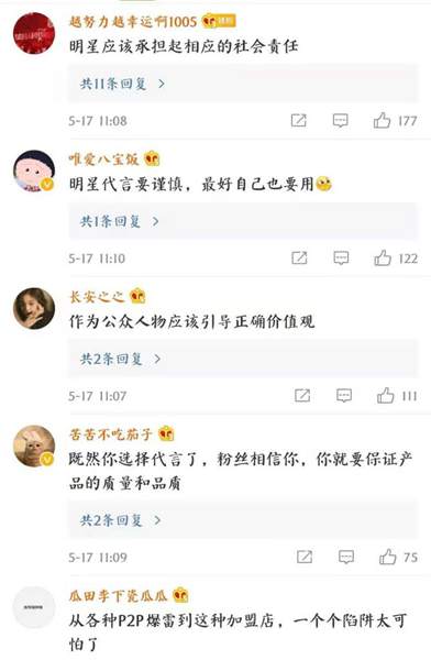 “代言时诱惑太高,出事后代价太小。”有网友在社交平台评论称,“明星‘任性’代言的代价,最终是由普通消费者买单,实在不该。”