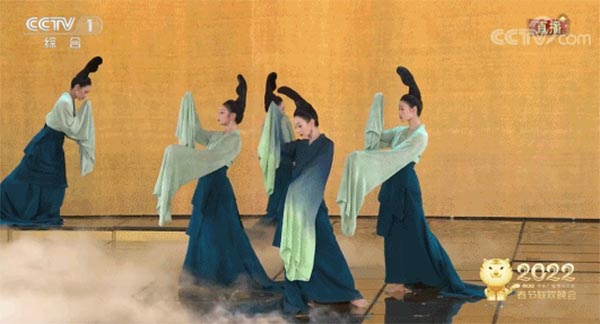 昨晚播出的2022年中央广播电视总台春节联欢晚会上,舞蹈诗剧《只此青绿》、景观太极《行云流水》、创意音舞诗画《忆江南》等节目再度掀起国风热潮。