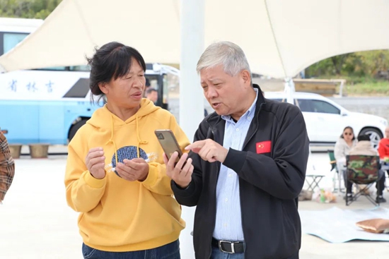 在创作活动现场,志愿服务小分队摄影家、部分第十一届全国农民摄影大展入展作者与碾子沟村农民手机摄影展的十余位获奖者结对创作,辅导拍摄,耐心详细解答村民提出的各种问题。
