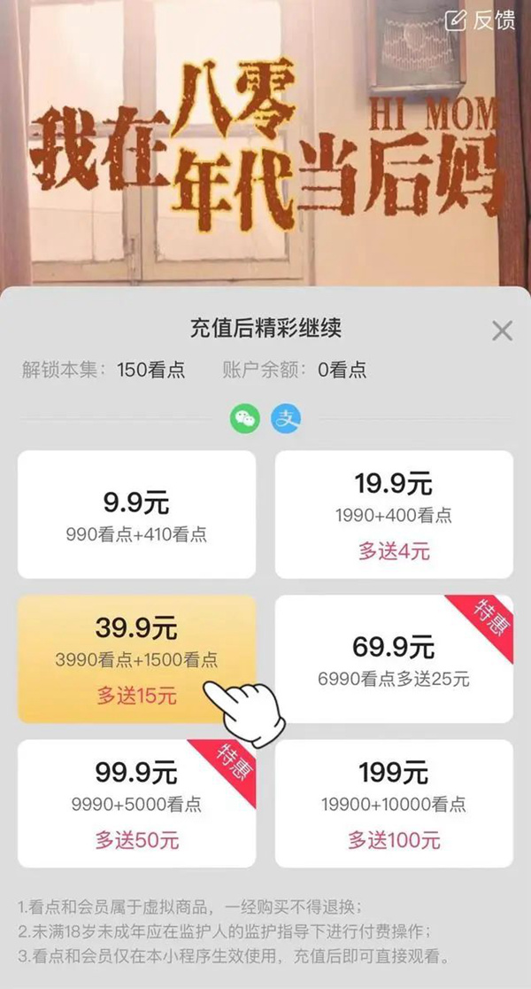 今年1月,中国消费者协会点名部分微短剧小程序诱导消费乱象:中老年人对使用手机不熟练,在受到“解锁一集只需0.9元”等广告宣传诱导后,很难注意到“默认下一集自动解锁”等选项,导致其在不知情的情况下购买了全部微短剧剧集,后续维权困难。