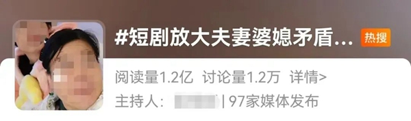 近日,“微短剧放大夫妻婆媳矛盾被禁”的话题冲上热搜。截至目前,该话题阅读量已超亿次。