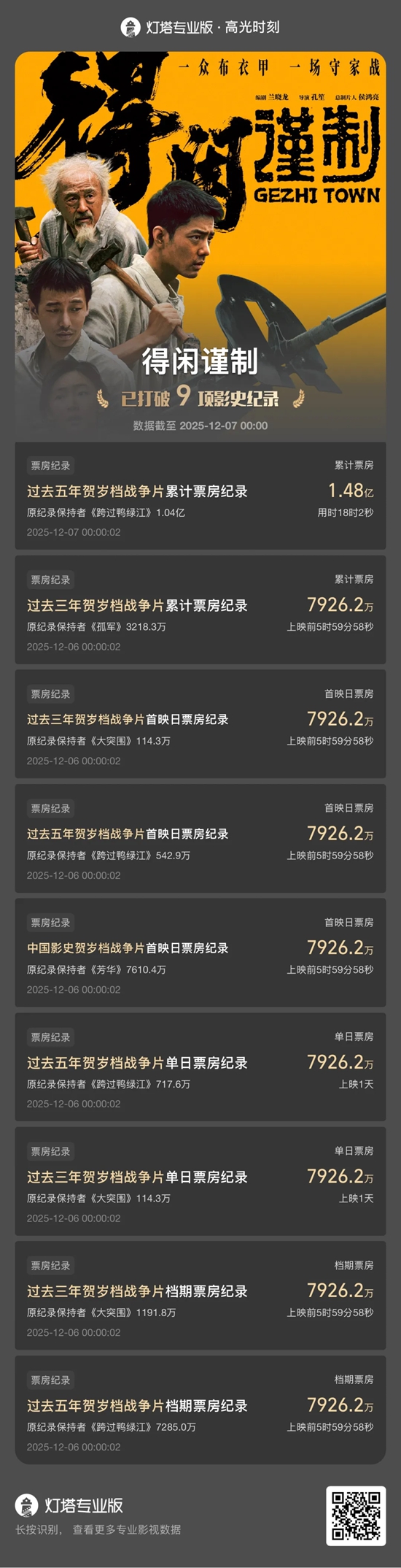 有人说,“这部电影颠覆了传统意义上的战争片”;也有人说,“这部作品拍得悲壮又热血,让人笑中带泪”。上映档期夹在《疯狂动物城2》和《阿凡达3》两部国际大片之间,从定档到上映仅8天时间,却打破9项影史纪录,成为年末电影市场的“黑马”,《得闲谨制》靠的是什么?